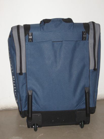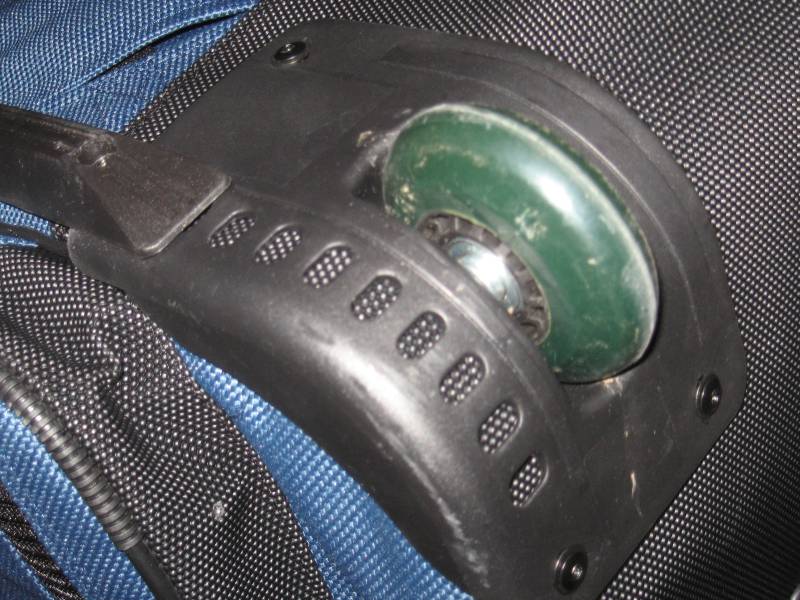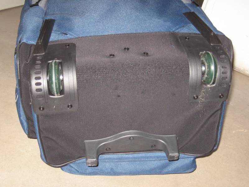 Die Tasche hat zwei leichtgängige Skaterrollen in stabilen Hartplastik-Aussparungen. Diese dienen gleichzeitig als Kantenschutz. Auch an den anderen Aussenkanten und Ecken befinden sich Kantenschutzverstärkungen. Auf den Bildern kann man diese am besten sehen.