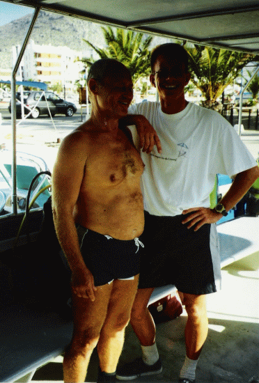 Am nächsten und für mich letzten Urlaubstag standen dann die zwei "richtigen" Freiwassertauchgänge an, so richtig vom Tauchboot aus auf dem Meer und zum ersten Mal auch "richtig tief". Das Tauchboot war voller erfahrener Tauchgäste, die untereinander mit mir noch unbekannten Tauchbegriffen fachsimpelten. Nach dem ziemlich kurzen Briefing für die "Horde" nahm mich Willi beiseite und sagte, dass wir eigenständig tauchen würden und uns von der Gruppe abseilen würden.
